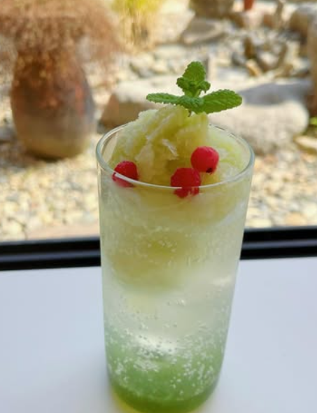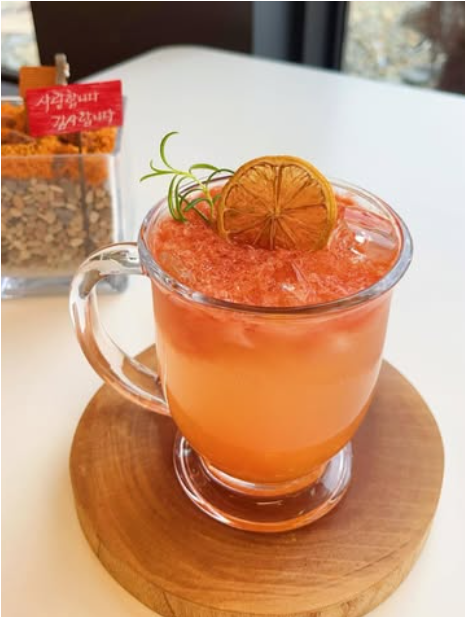 수제 바닐라 시럽을 이용한 바닐라 라테를 비롯해서 시그니처 메뉴로 수제 청귤차, 스트로피치, 하와이안자몽, 청포도소르베, 빙수 등 다양한 메뉴가 있으며, 다양한 디저트도 준비되어 있습니다.